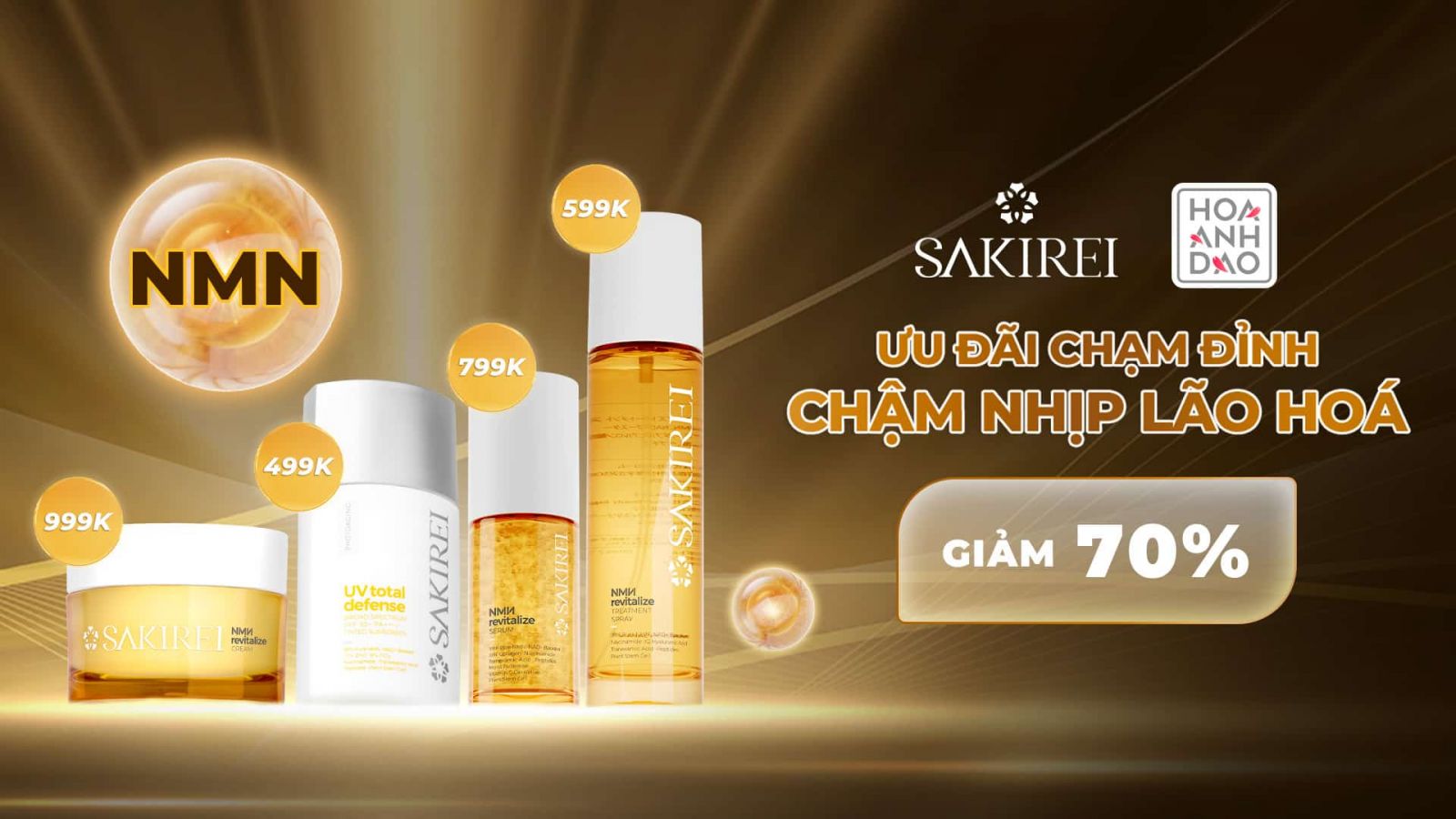 Nhằm mang đến cho tất cả quý khách hàng cơ hội trải nghiệm sản phẩm tốt nhất, Sakirei tung ưu đãi Giảm 70% cùng quà tặng hấp dẫn dành riêng khi sở hữu Bộ 4 dưỡng da chống lão hóa cao cấp Sakirei NMN Revitalize.