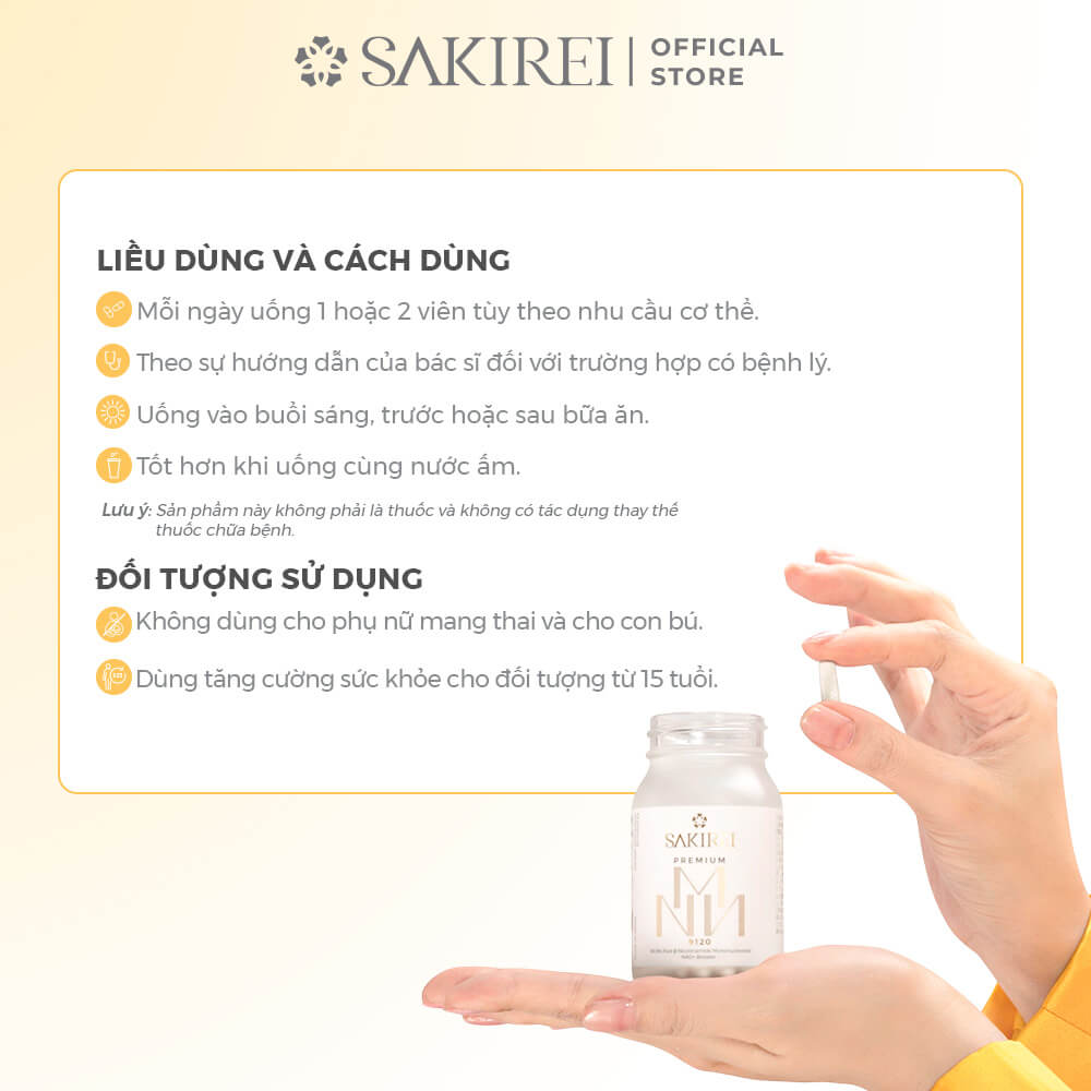 • Sakirei Premium NMN 9120 không phải là thuốc và không có tác dụng thay thế thuốc chữa bệnh.