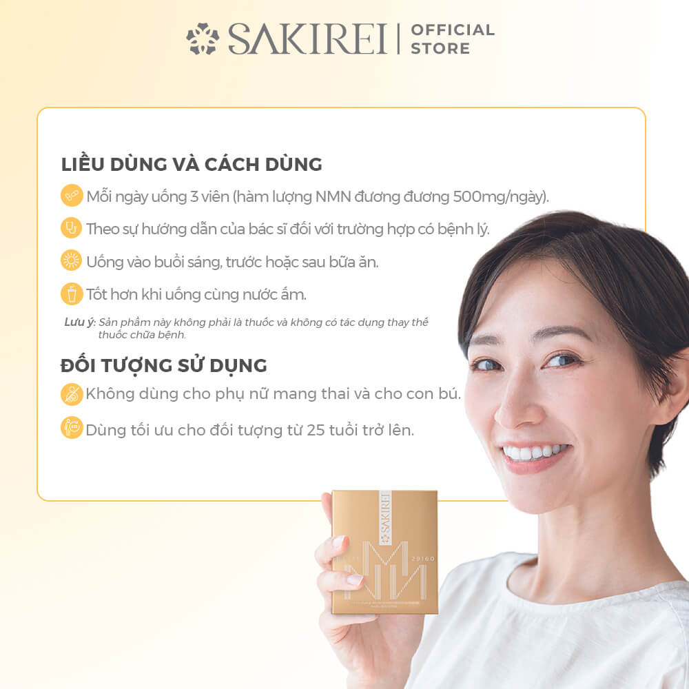 • Sakirei Elite NMN 29160 không phải là thuốc và không có tác dụng thay thế thuốc chữa bệnh.