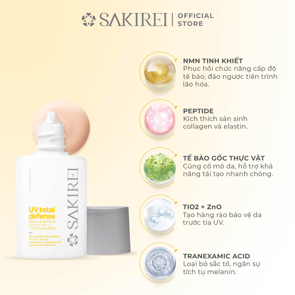 Sakirei UV Total Defense Broad Spectrum SPF 50+ PA++++ Tinted Sunscreen đem lại lợi ích như sau: